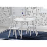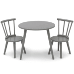 Simple, sturdy, and stylish—this kids’ table and chair set is perfect for playtime, crafts, or snack breaks. Designed with smooth edges and solid wood legs, it offers a safe and modern addition to any playroom or nursery.