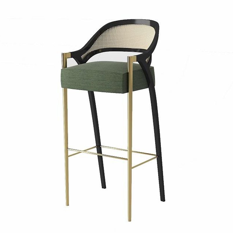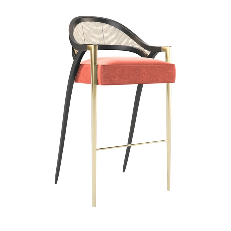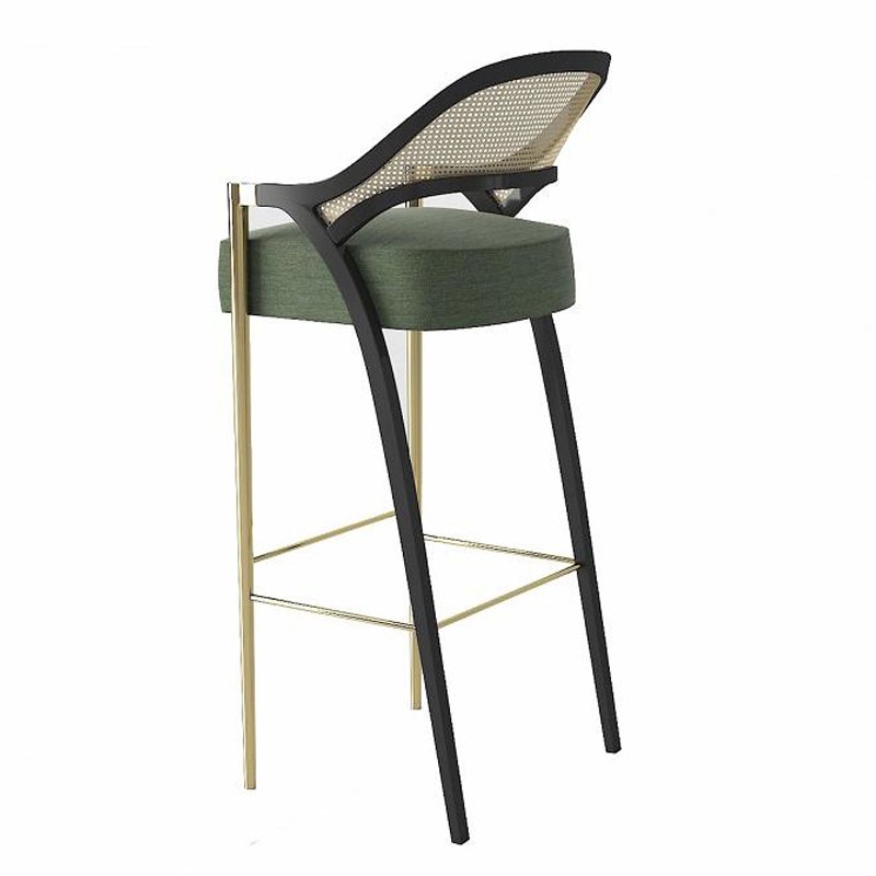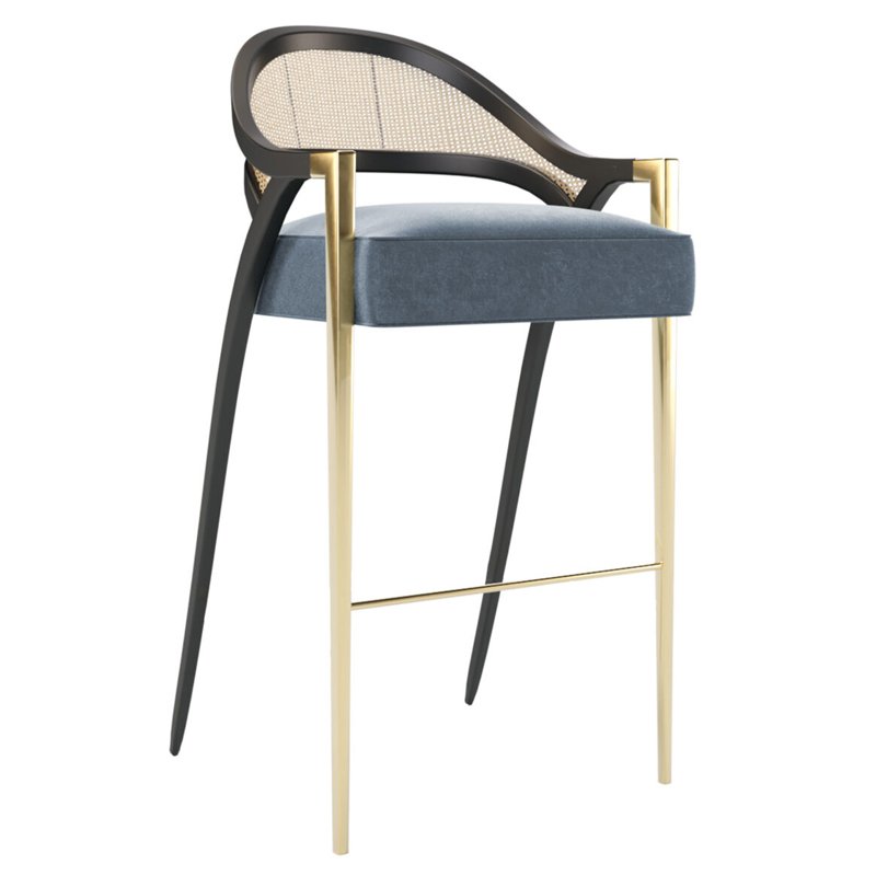 Give your kitchen or bar area a refreshing twist with these stunning Mid-Century Modern stools. Plush upholstered, with a curving backrest in rattan for ergonomic support and a foam-filled seat, these stools promise great comfort. With a footrest built into the design and classic lines, this stool will be at home both in everyday use and for special occasions.