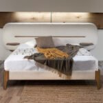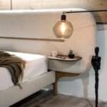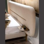 Experience the perfect harmony of comfort and contemporary design with the Ginza Bed. The unique headboard design incorporates integrated wooden floating nightstands and a sleek wood inlay shelf, blending natural materials with smart functionality. Supported by an upholstered frame and tapered wooden legs, this piece offers a warm, organic, and ultra-modern centrepiece for your bedroom.