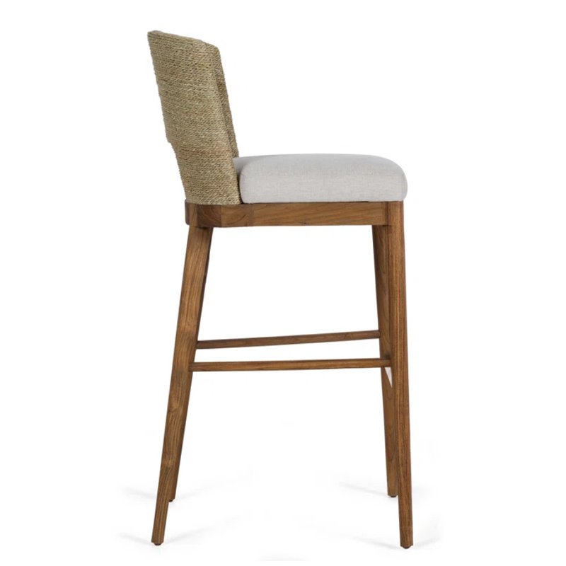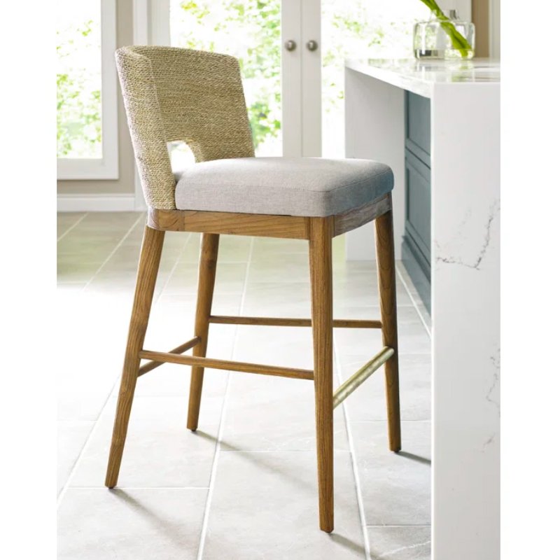 It’s casual, it’s versatile, and it’s right at home. With its great looks and quality craftsmanship, this is everything we love in a counter stool. The sea grass back rest – hand woven and bent into shape – is accented with sand blasted teak and a comfortable cushion upholstered in a high performance fabric. A brass foot rest completes this buttoned up stool.