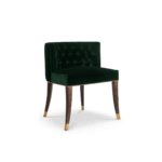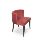 This elegant chair features luxurious velvet upholstery in a rich coral hue, complemented by tufted detailing and sleek wooden legs with brass accents. Its sophisticated design adds a touch of glamour and comfort to any dining or living space.