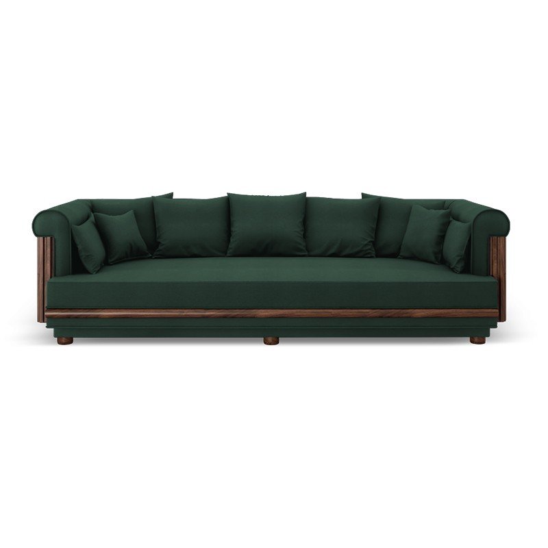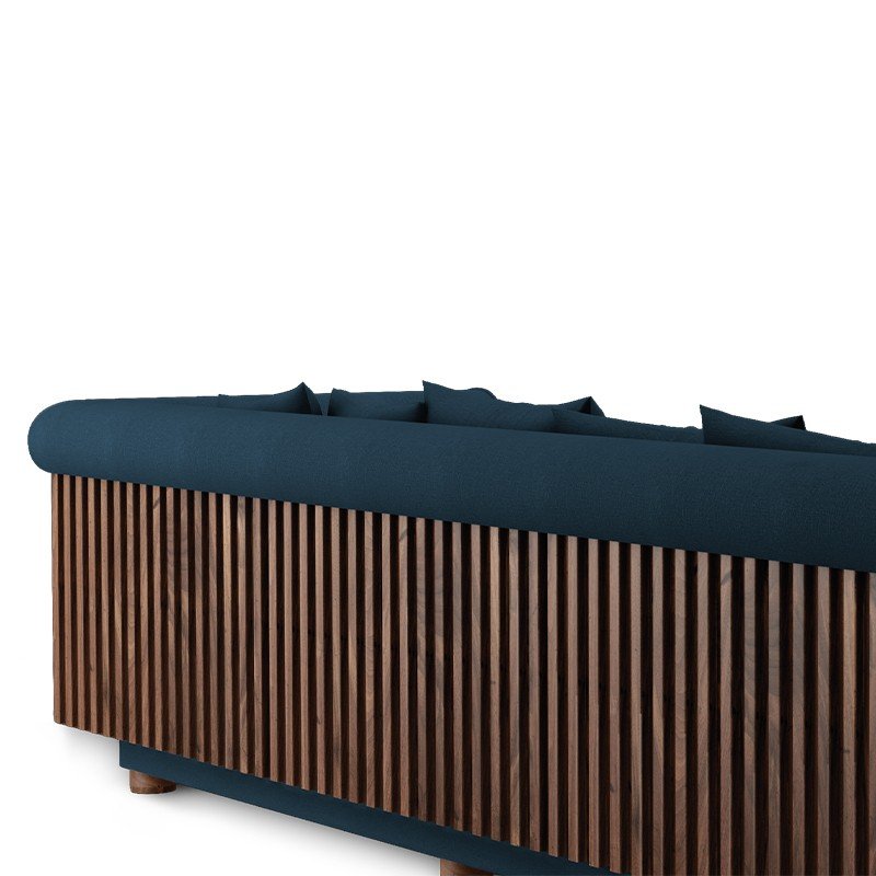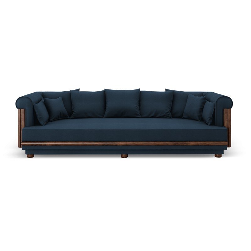 The Oxford Sofa combines contemporary comfort with classic craftsmanship. Featuring deep navy upholstery and elegant wooden panel detailing, it offers a bold yet refined aesthetic. The plush cushions and spacious seating ensure a luxurious lounging experience, making it a perfect centrepiece for modern or transitional interiors.