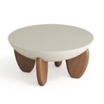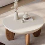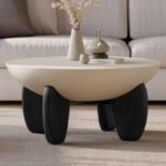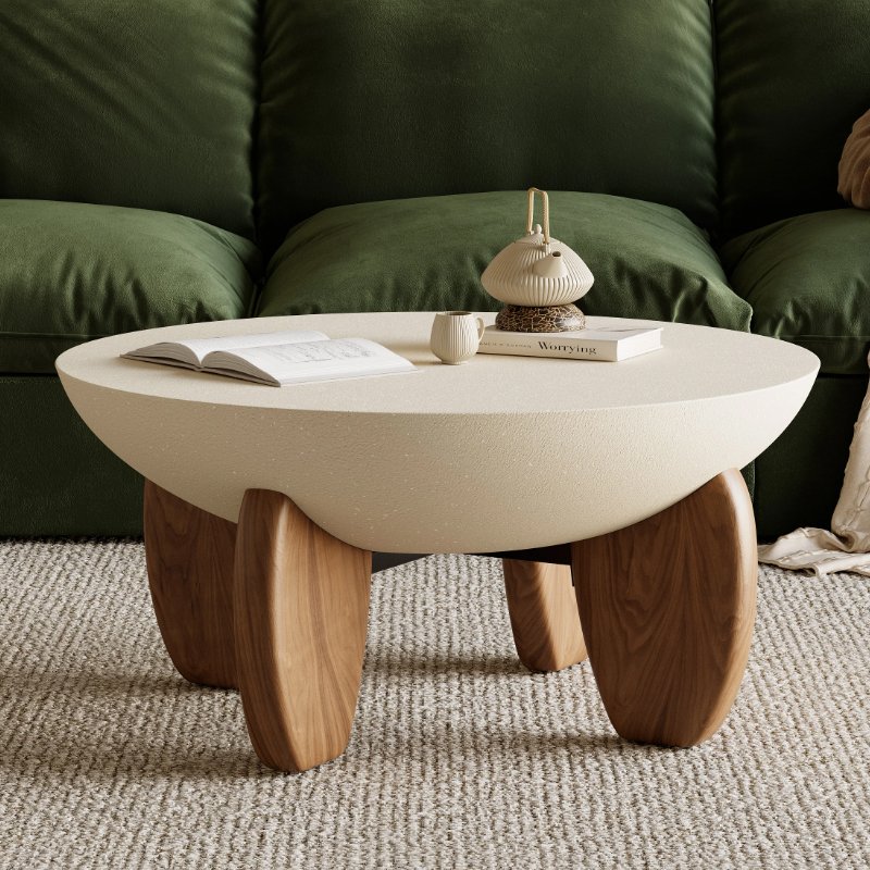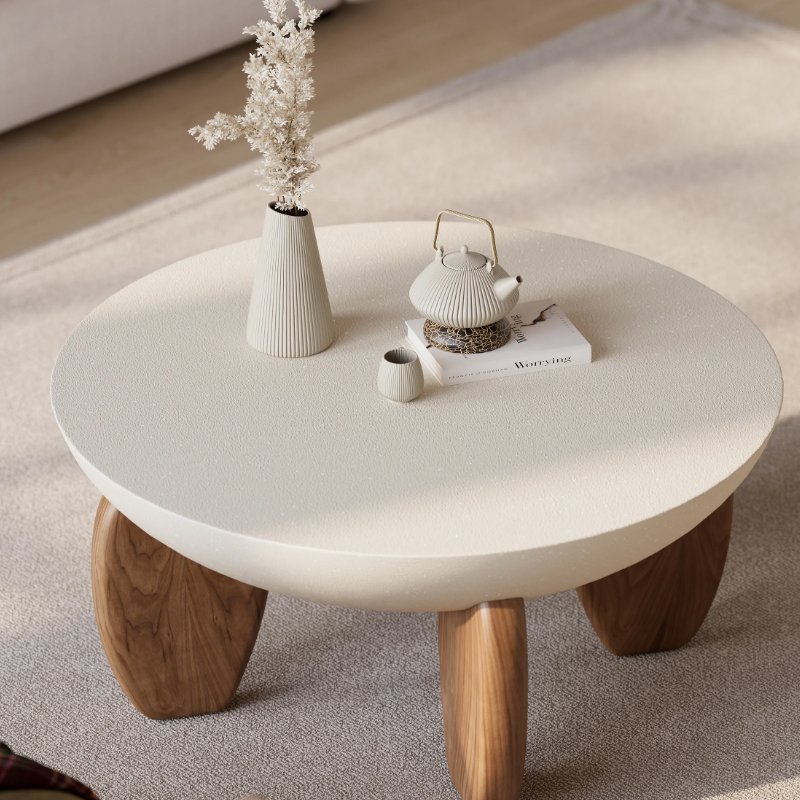 This coffee table is concrete in a desert sand finish and its shapely base creates an earthy texture on this beautiful, lightweight piece, bringing an organic element to any living room. The smooth, round design reduces the risk of accidental bumps, making it a safer choice for homes with children and pets.