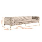 The Santa Monica Sofa exudes timeless sophistication with its classic tufted design and luxurious beige upholstery. Featuring deep button detailing, plush cushioning, and elegant gold legs, this sofa brings a refined charm to both modern and traditional interiors. Perfect for creating a statement of comfort and elegance in any living space.
