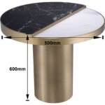 This stylish round side table featuring a two-tone marble top—half black with white veining and half white with subtle grey veins—separated by a thin divider. The table has a cylindrical brass base, giving it a luxurious and contemporary look ideal for modern interiors.