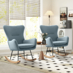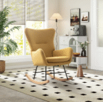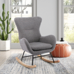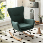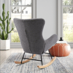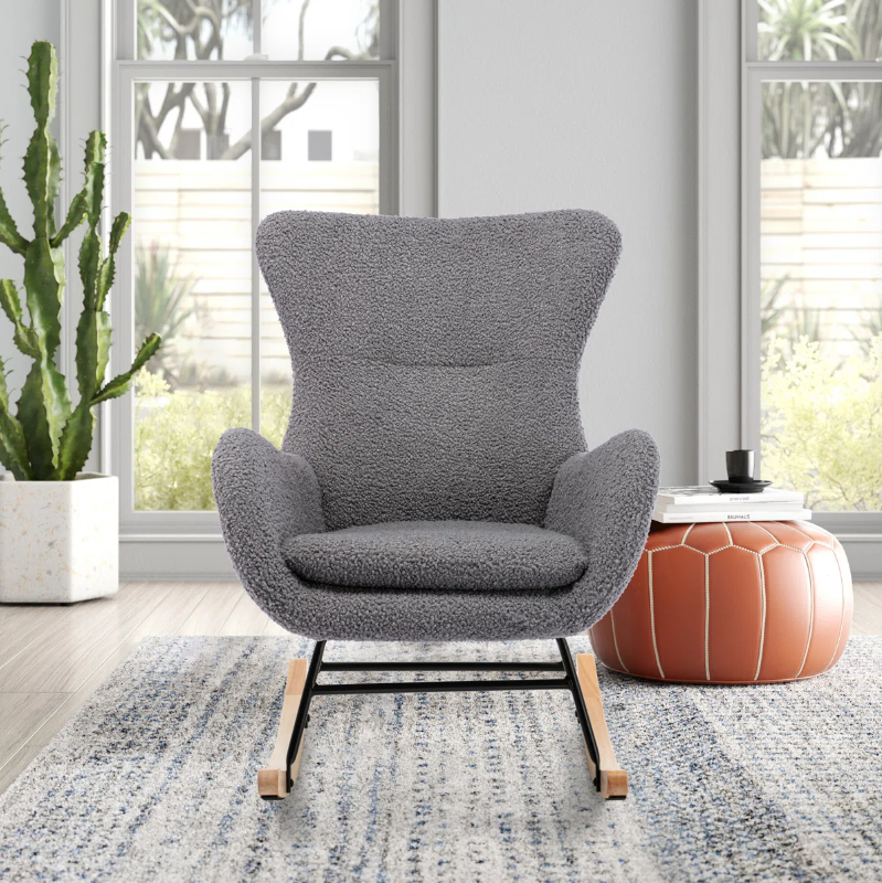 Experience modern comfort with this cozy rocking chair, featuring a soft boucle-style fabric and sleek wooden rockers. Its supportive high back and curved design make it perfect for relaxing in your living room, nursery, or reading corner.